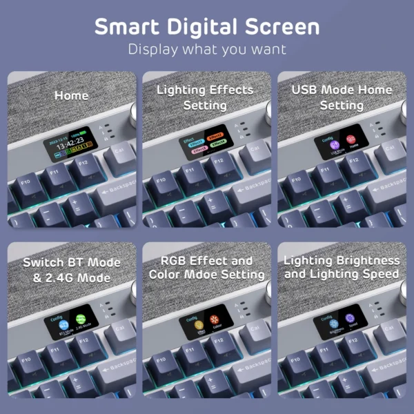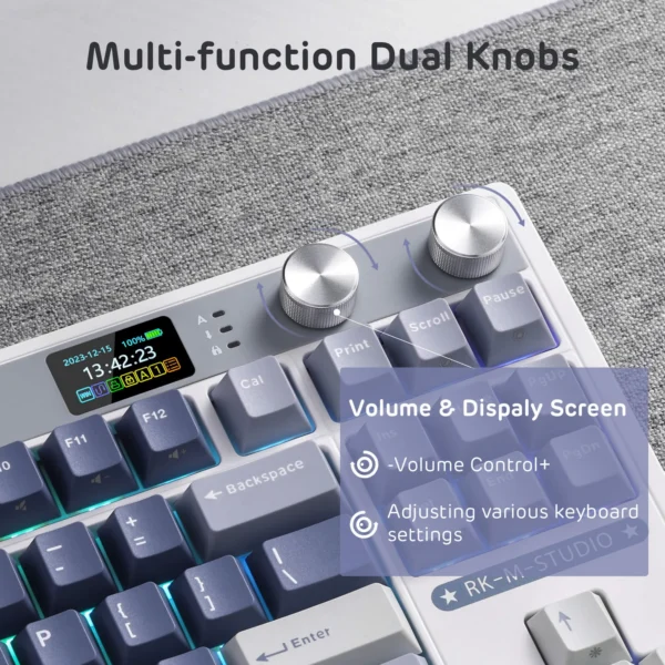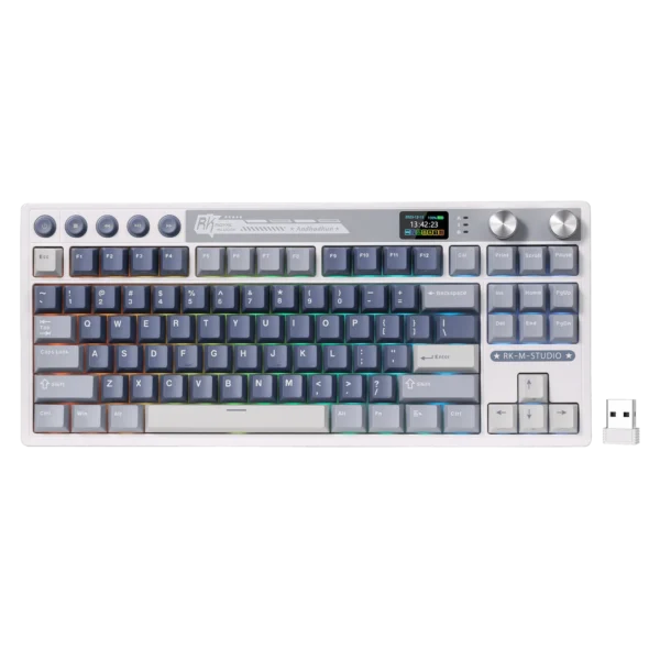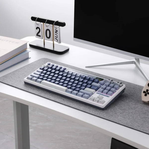 The M87 keyboard is equipped with a vibrant LCD smart display screen, showing real-time information such as time, connection status, battery level, and even custom GIF images. This innovative screen offers clear visibility of your keyboard’s status and allows you to easily customize visuals through software, making your work and gaming experience both fun and highly functional.