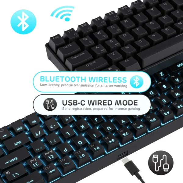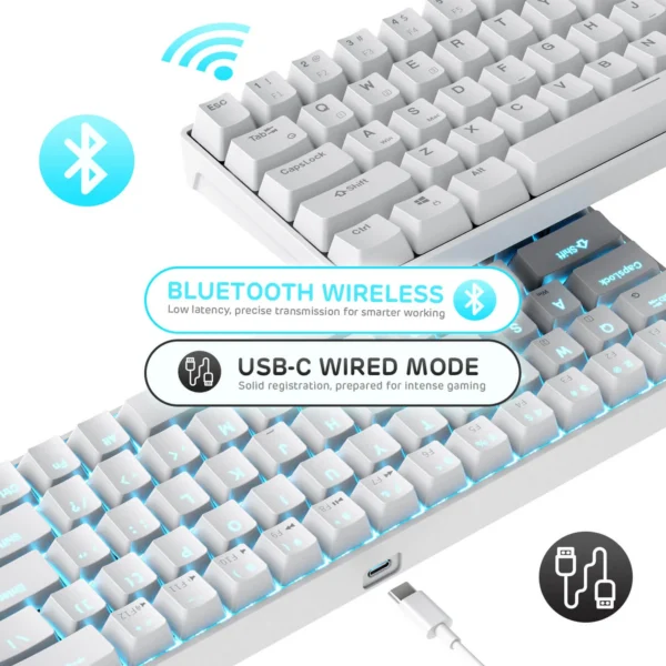 68 Keys Compact Bluetooth Gaming Keyboard with Stand-Alone Arrow/Control Keys
